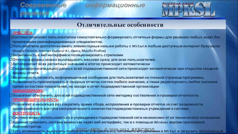 Пользователю достаточно иметь элементарные навыки работы с MS Exel и любым доступным интернет-браузером (Google Chrome, Internet Explorer 8+, Opera, Mozilla FireFox)