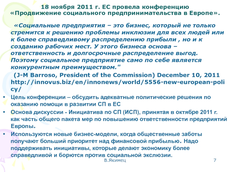 Слайд 718 ноября 2011 г. ЕС провела конференцию