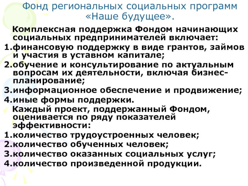 Слайд 46Финансовая помощь в начале деятельности: