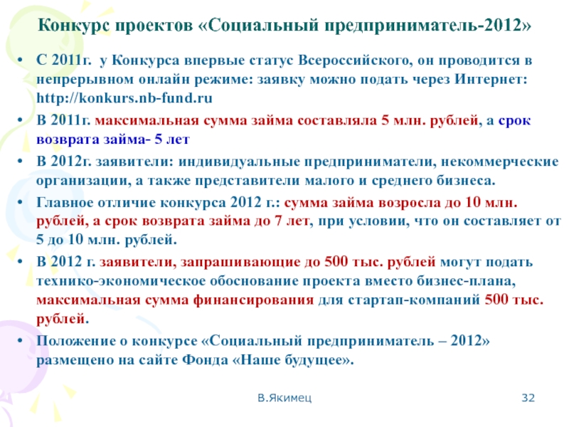 Новые законопроекты –Закон о соц. предпринимательстве