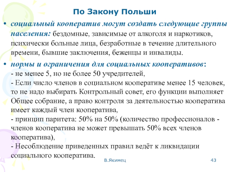 нормы и ограничения для социальных кооперативов: