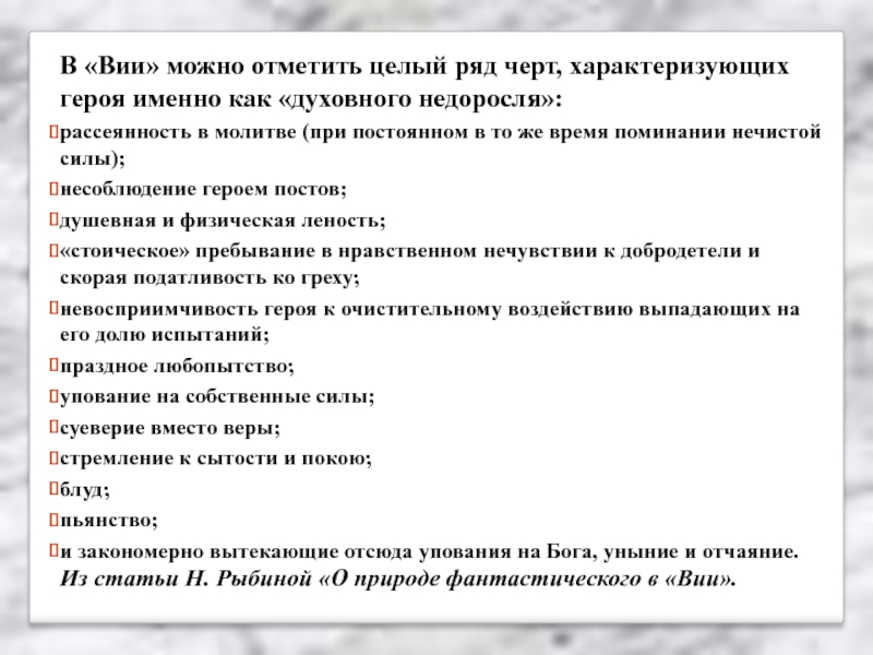 Слайд 11В «Вии» можно отметить целый ряд черт, характеризующих героя именно как