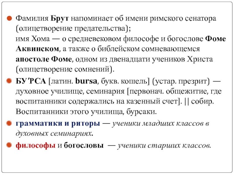 Фамилия Брут напоминает об имени римского сенатора (олицетворение предательства);