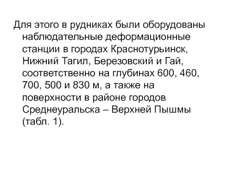 Слайд 4Для этого в рудниках были оборудованы наблюдательные деформационные станции в городах