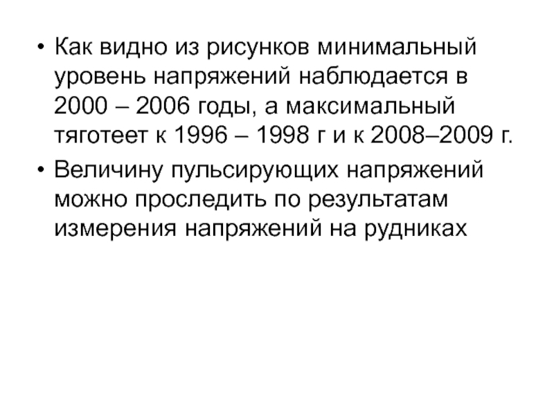 Слайд 10Как видно из рисунков минимальный уровень напряжений наблюдается в 2000 –