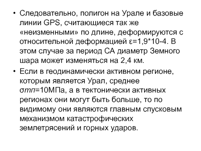 Слайд 14Следовательно, полигон на Урале и базовые линии GPS, считающиеся так же