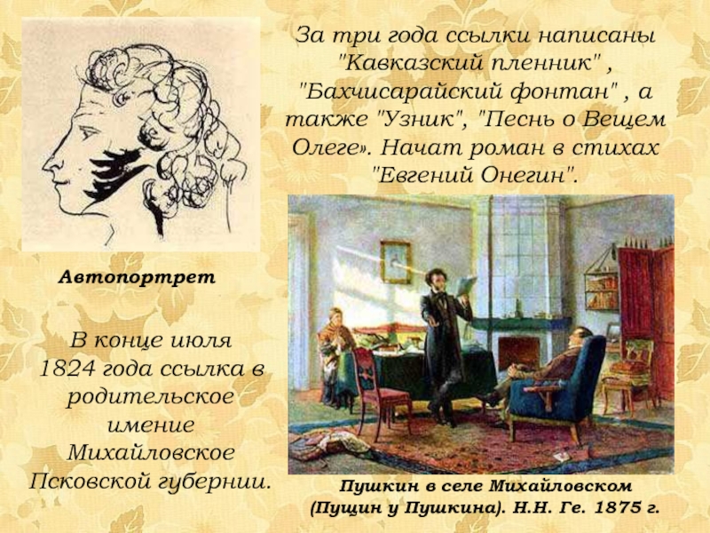 1824 года ссылка в родительское имение Михайловское Псковской губернии.