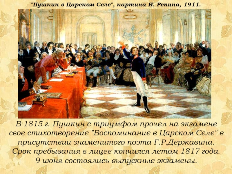 "Пушкин в Царском Селе", картина И. Репина, 1911.