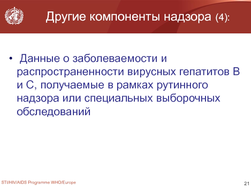 Слайд 21STI/HIV/AIDS Programme WHO/Europe