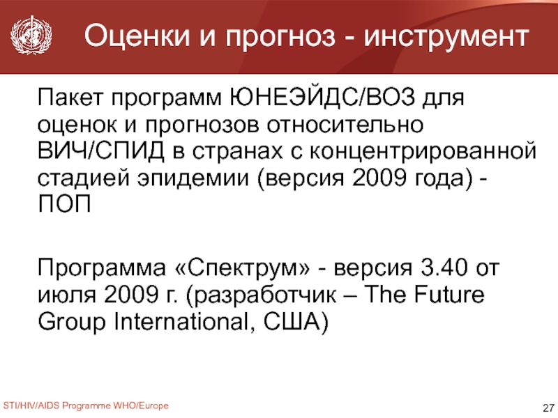 Слайд 27STI/HIV/AIDS Programme WHO/Europe