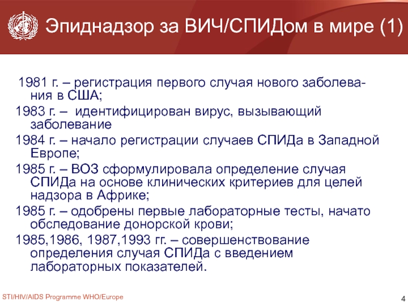 Слайд 4STI/HIV/AIDS Programme WHO/Europe