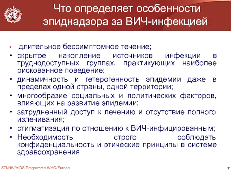 Слайд 7STI/HIV/AIDS Programme WHO/Europe
