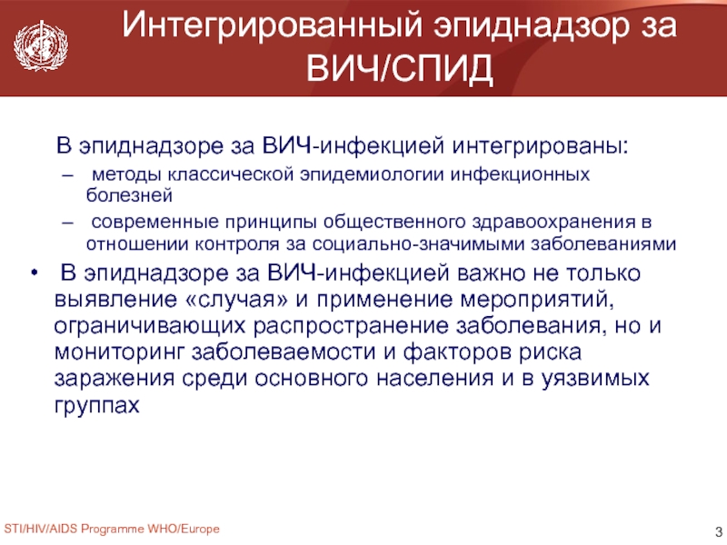Слайд 3STI/HIV/AIDS Programme WHO/Europe