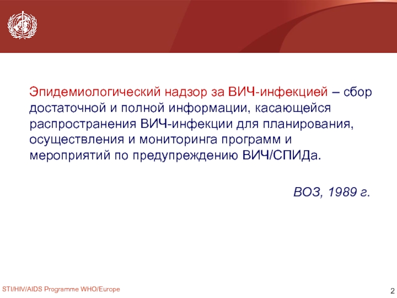 Слайд 2STI/HIV/AIDS Programme WHO/Europe