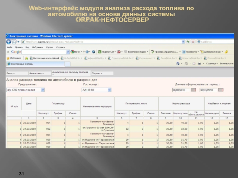 Учет транспортной работы и фактического расхода топлива на уровне автомобиля