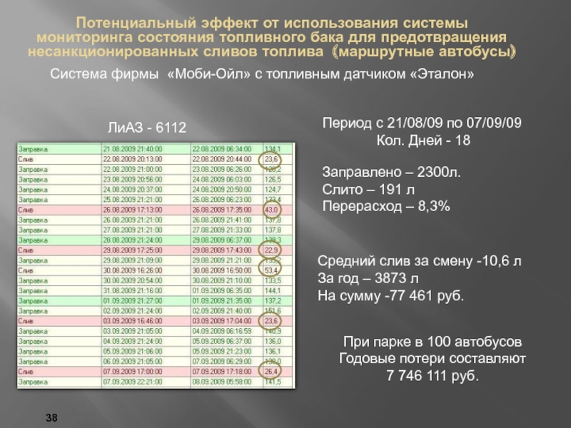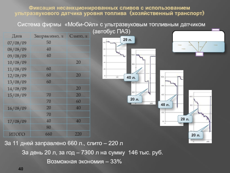 За 11 дней заправлено 660 л., слито – 220 л