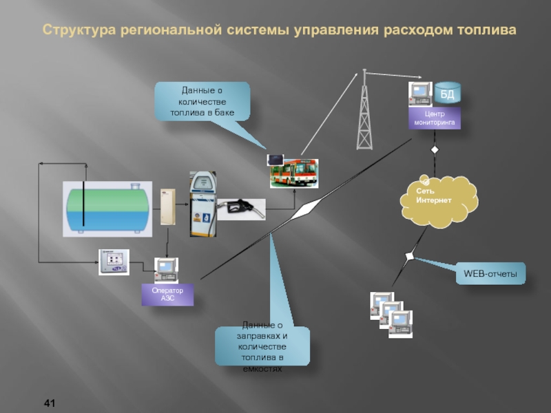 Данные о количестве топлива в емкости бензовоза