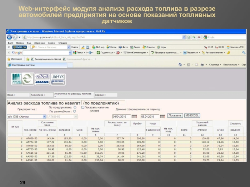 Программное обеспечение системы управления расходом топлива