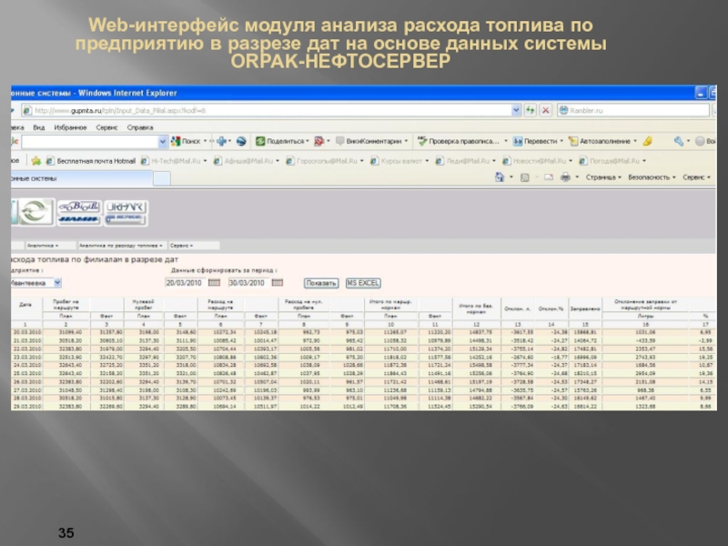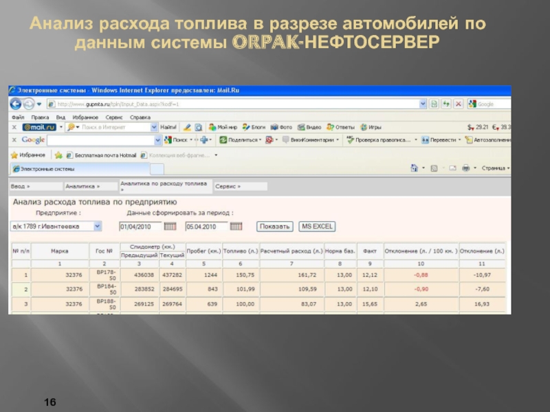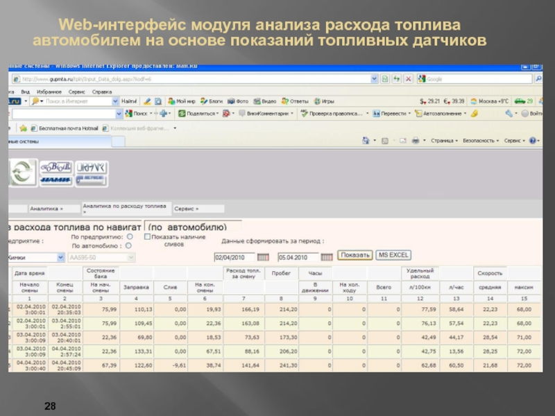 Модуль анализа расхода топлива