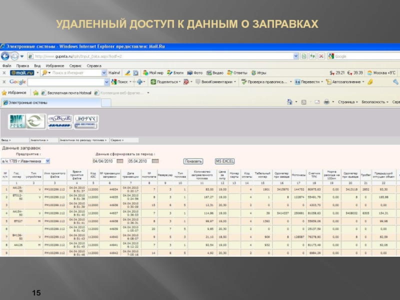 Первичная информация о движении топлива на уровне АЗС предприятия