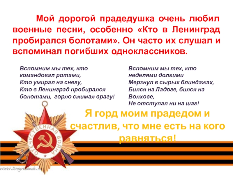 Кто в Ленинград пробирался болотами, горло сжимая врагу!