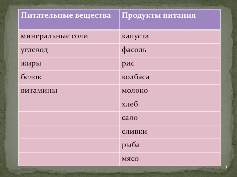 Капуста, фасоль, минеральные соли,
