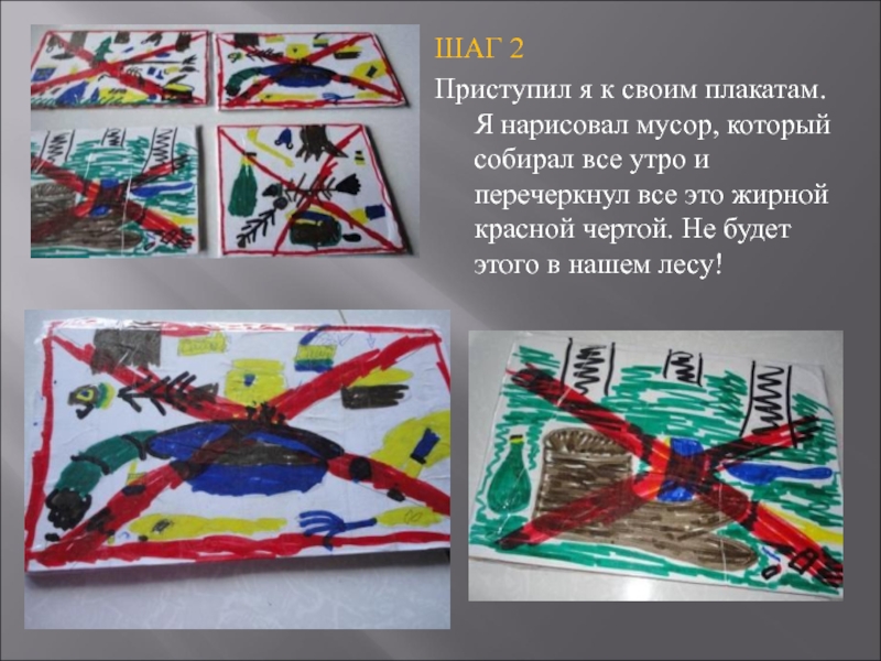 Приступил я к своим плакатам. Я нарисовал мусор, который собирал