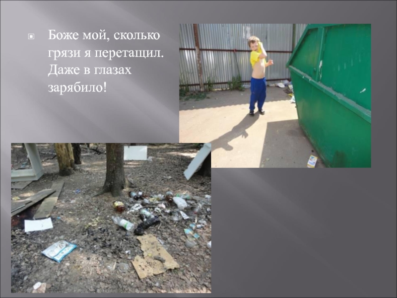 Слайд 5Боже мой, сколько грязи я перетащил. Даже в глазах зарябило!