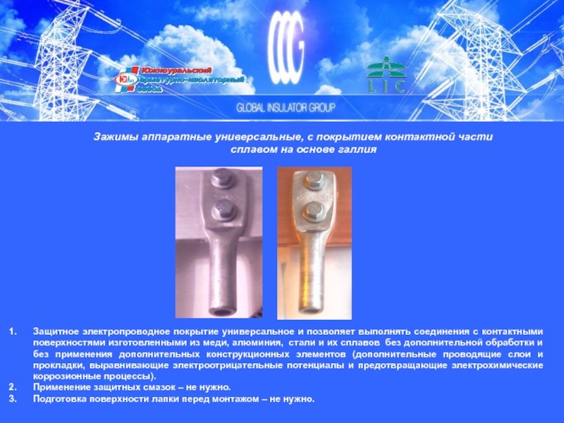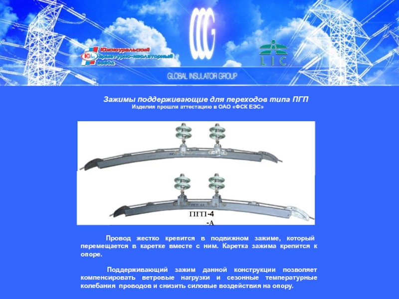 Вся гамма зажимов: 2ПГН-5-А; 3ПГН-5-А; ПГН2-5-А; 2ПГН2-5-А; 3ПГН2-5-А – отличается от существующих конструкций повышенными механическими характеристиками, износостойкостью, устойчивостью подвески расщеплённого провода.