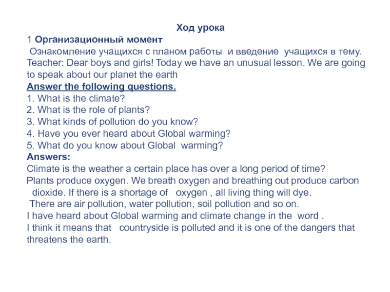 Ц ель урока