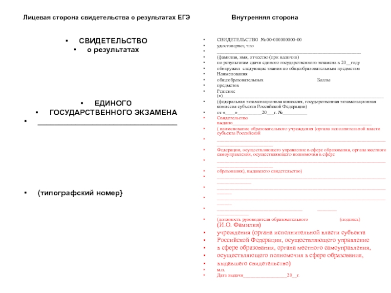 по результатам сдачи единого государственного экзамена в 20__году