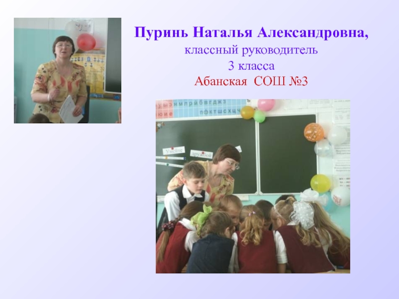 Слайд 8Пуринь Наталья Александровна, классный руководитель 3 класса Абанская СОШ №3