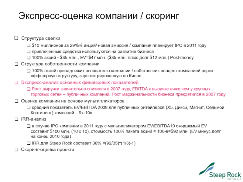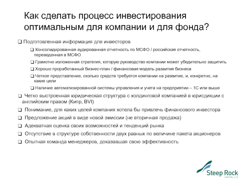 Совет Директоров принимает окончательное решение по результатам due diligence, проведенного Steep Rock и внешними консультантами
