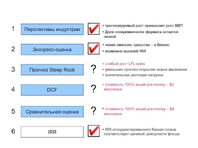 Построение и тщательный анализ финансовой модели / решение о представлении проекта на Инвестиционный Комитет