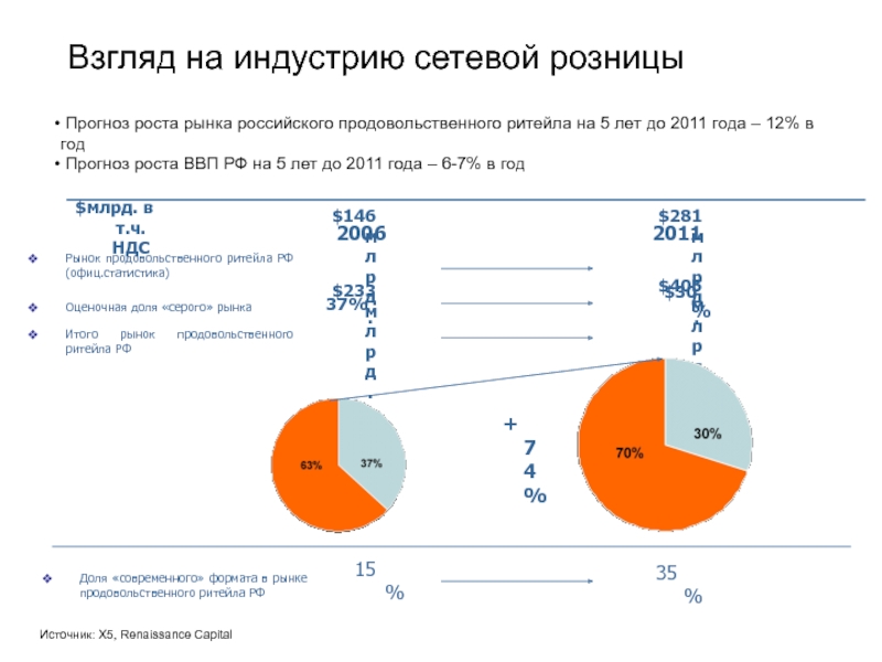 Доля «современного» формата в рынке продовольственного ритейла РФ