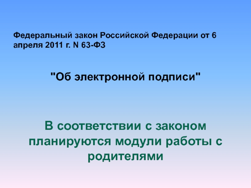 Слайд 18Федеральный закон Российской Федерации от 6 апреля 2011 г. N 63-ФЗ