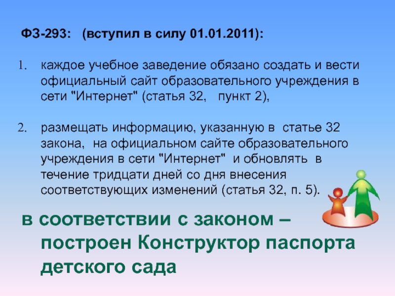 Слайд 6ФЗ-293: (вступил в силу 01.01.2011):