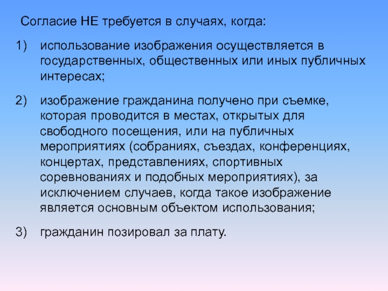 Слайд 14Согласие НЕ требуется в случаях, когда: