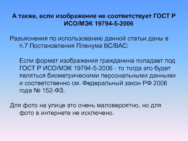 Слайд 15А также, если изображение не соответствует ГОСТ Р ИСО/МЭК 19794-5-2006