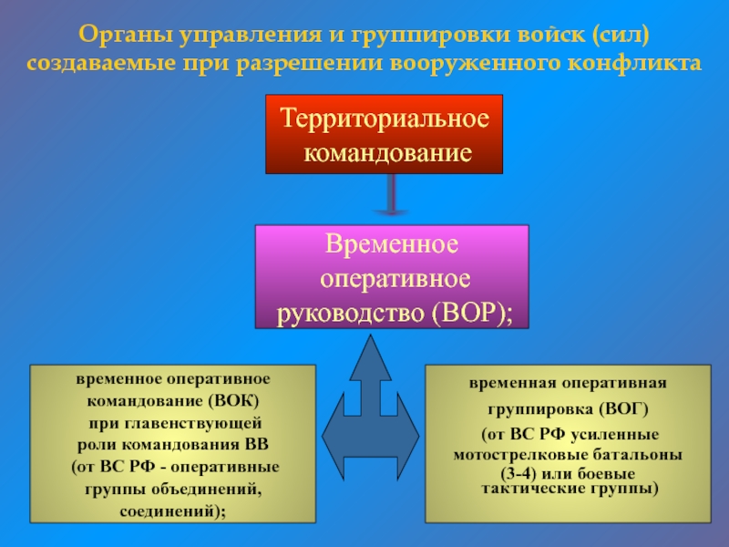 Органы управления и группировки войск (сил) создаваемые при разрешении вооруженного конфликта