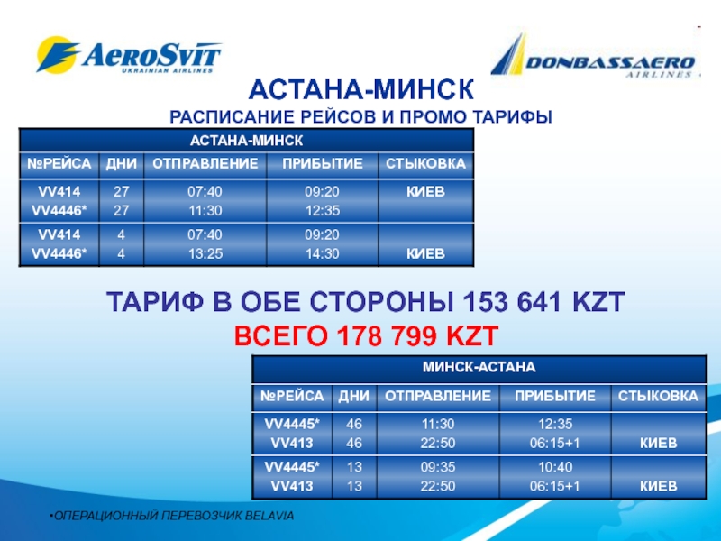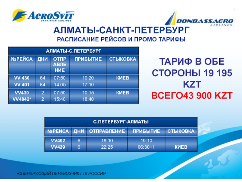 * СТОИМОСТЬ УКАЗАНА В ОБЕ СТОРОНЫ И ВКЛЮЧАЕТ ВСЕ ТАКСЫ И СБОРЫ