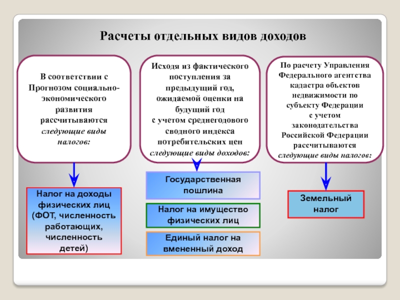 с учетом законодательства Российской Федерации рассчитываются следующие виды налогов: