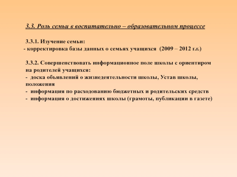 3.3.2. Совершенствовать информационное поле школы с ориентиром на родителей учащихся: