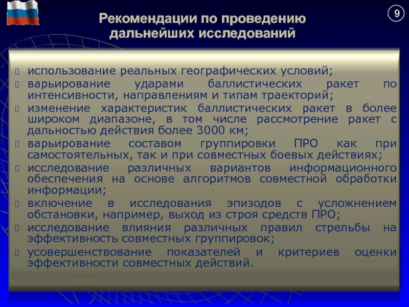 включение в исследования эпизодов с усложнением обстановки, например, выход из строя средств ПРО;