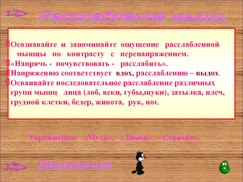 Упражнения: «Муха», «Лимон», «Стряхни».