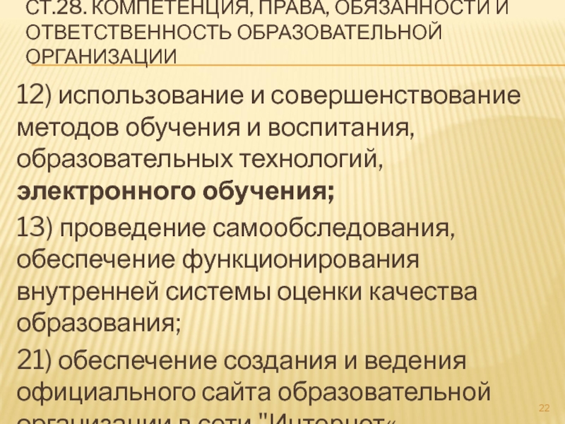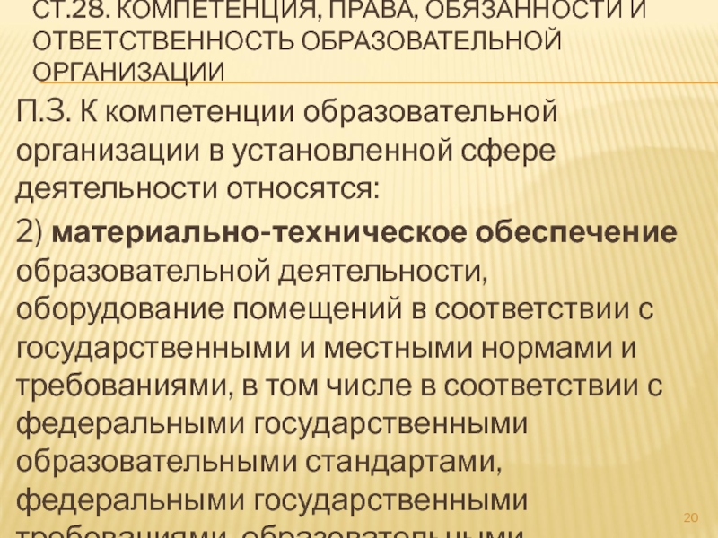СТ.28. КОМПЕТЕНЦИЯ, ПРАВА, ОБЯЗАННОСТИ И ОТВЕТСТВЕННОСТЬ ОБРАЗОВАТЕЛЬНОЙ ОРГАНИЗАЦИИ