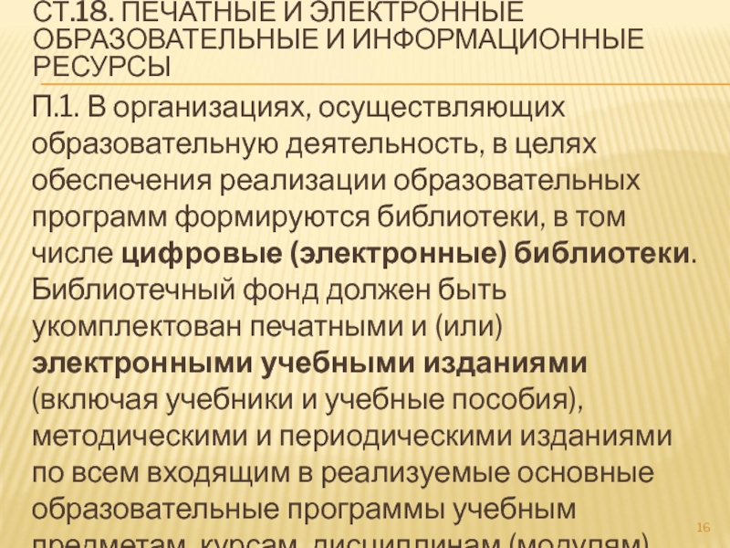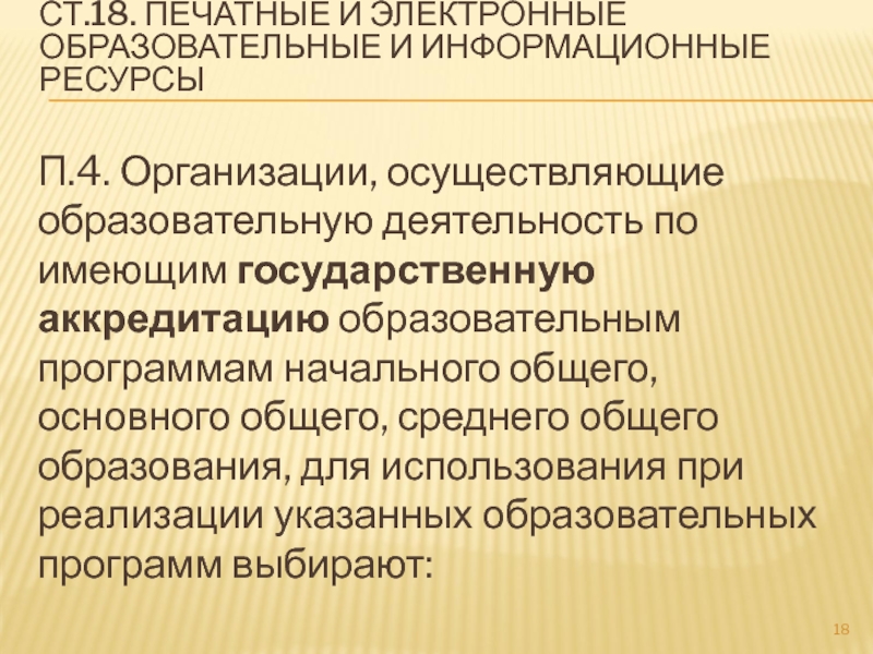 СТ.18. ПЕЧАТНЫЕ И ЭЛЕКТРОННЫЕ ОБРАЗОВАТЕЛЬНЫЕ И ИНФОРМАЦИОННЫЕ РЕСУРСЫ