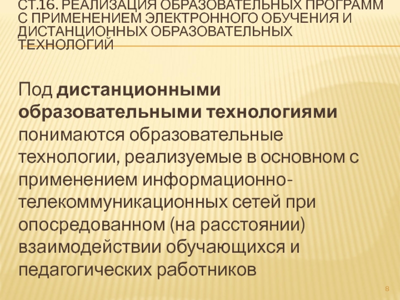 СТ.16. РЕАЛИЗАЦИЯ ОБРАЗОВАТЕЛЬНЫХ ПРОГРАММ С ПРИМЕНЕНИЕМ ЭЛЕКТРОННОГО ОБУЧЕНИЯ И ДИСТАНЦИОННЫХ ОБРАЗОВАТЕЛЬНЫХ ТЕХНОЛОГИЙ