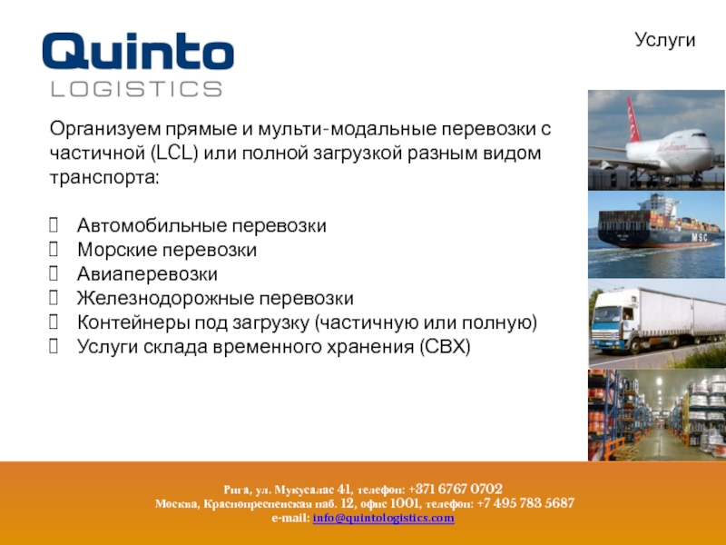 Организуем прямые и мульти-модальные перевозки с частичной (LCL) или полной загрузкой разным видом транспорта: