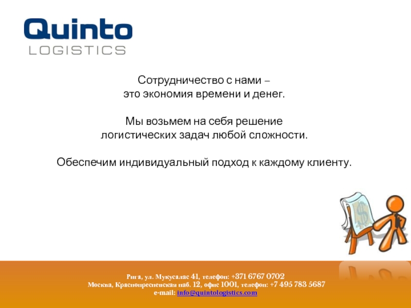 При решении поставленных задач, мы не упускаем из виду решения возможных дополнительных вопросов (конфиденциальность, корректность и др.), весь процесс доставки груза происходит строго под нашим контролем.